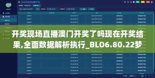 随着科技的不断进步和互联网的迅猛发展,彩票行业也迎来了新一轮的变革。在众多的彩票产品中,澳门彩票因其独特的魅力和丰富的玩法,吸引了大量玩家的关注。而“现场直播澳门开奖了吗现在开奖结果,全面数据解析执行_BLO6.80.22梦想版”则成为了广大彩民获取实时开奖信息和数据分析的重要工具。