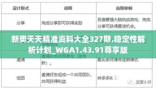 近年来,随着大数据和人工智能技术的快速发展,精准数据分析的重要性日益凸显。新奥天天精准资料大全作为这一领域的重要产品,以其强大的数据分析能力和高度的准确性,在市场上赢得了广泛的认可和应用。本文将围绕新奥天天精准资料大全327期以及WGA1.43.91尊享版的稳定性解析计划进行深入探讨,以期为用户提供清晰的使用指导和技术支持。