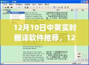 随着全球化进程的加速,中英实时翻译软件在日常生活和工作中的需求愈发凸显,特别是在12月这个年终岁末、节日频繁、国际交流增多的特殊时期,一款高效准确的翻译软件显得尤为重要,本文将围绕“12月10日中英实时翻译软件推荐”这一主题,探讨当前市场上主流翻译软件的优缺点,并结合实际使用情况,提出个人推荐及观点。