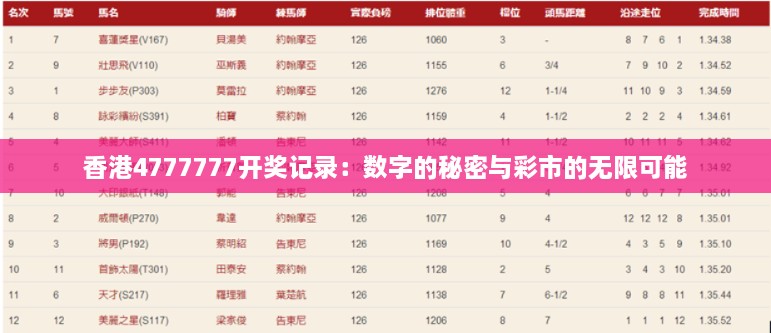 转载请注明来自首页,本文标题:《香港4777777开奖记录:数字的秘密与彩市的无限可能》