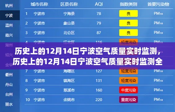 随着环境保护意识的日益增强,空气质量监测已成为公众关注的焦点,本文将重点介绍历史上的12月14日宁波空气质量实时监测项目,分析其特性、使用体验、与竞品的对比、优点与缺点,以及目标用户群体分析,希望通过本文,读者能对这一项目有更深入的了解。